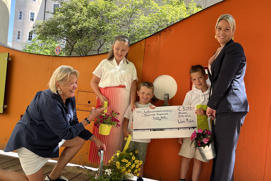 Danke, liebe Familie Müller, für Ihr Vertrauen – und Ihre großartige Unterstützung. Sie sind ein Vorbild für viele. Bild (vrnl).: Verena Müller, Leandro, Lian, Amelie und Guggy Borgolte vom Hauner Verein