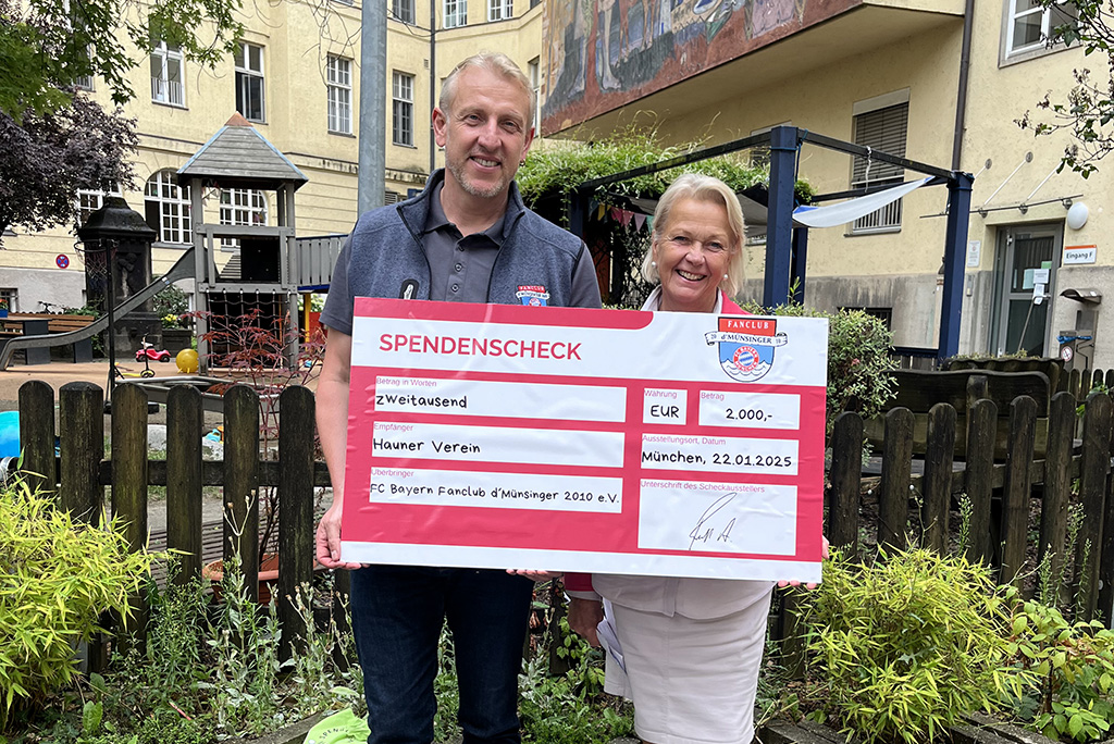 Der FC Bayern Fanclub d'Münsinger 2010 e.V. beweist Herz für Kinder: Mit einer Spende von 2.000 Euro unterstützt der Verein die wichtige Arbeit des Hauner Verein e.V. für die kleinen Patientinnen und Patienten der Kinderklinik.