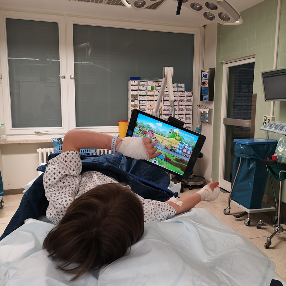 Im Rahmen der Schmerztherapie auf der interdisziplinären Tagesstation soll ein i-Pad angeschafft werden, das die kleinen und großen Patienten bei invasiven Proceduren wie Kathederanlagen, etc. ablenken soll.